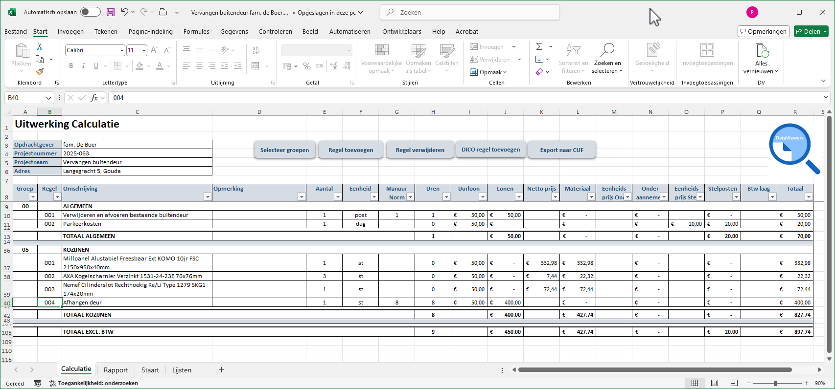 Combineer deze Excel module met de DICO Viewer voor artikel prijsbestanden van je eigen bouwmaterialen leverancier en het resultaat is verbluffend!